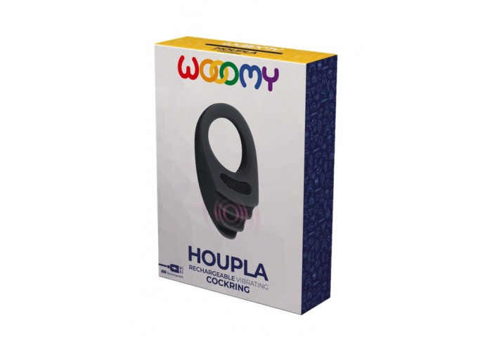 Бренд Wooomy представляє потужне віброкільце з ємним вбудованим акумулятором — Wooomy Houpla. Це перезаряджуване кільце підходить більшості, оскільки чудово розтягується і водночас залишається досить щільним, щоб підтримувати ерекцію. Потужний мотор видає цілих 10 режимів вібрації, що перемикаються однією кнопкою. Досить довга і широка вібрувальна частина ідеально лягає на клітор і забезпечує додаткову стимуляцію вашій партнерці.