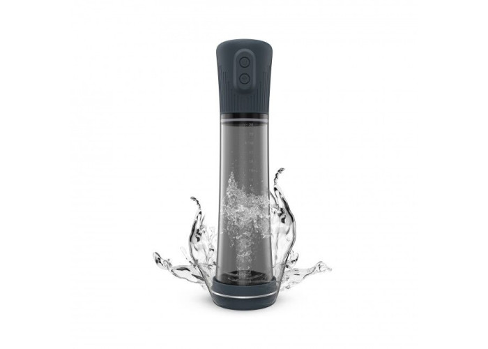 - Як ефективна гідропомпа. В даному випадку в колбу перед тим, як помістити в неї пеніса, необхідно налити води, після чого занурити пеніс і натиснути кнопку. Потужний мотор буде одночасно створювати вакуум і відкачувати воду. Вода виходить під напором зі спеціального отвору біля порту зарядки. Мотор працює дуже тихо!