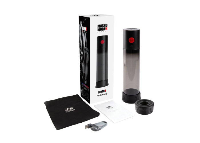 Автоматична вакуумна помпа Otouch MACHO WORK 1 — те, що потрібно, якщо ви хочете миттєвого ефекту збільшення пеніса! Ви побачите як він росте буквально за хвилини, ще й отримаєте задоволення від плавно наростального вакууму. Помпа являє собою прозору, злегка затемнену колбу з градацією в сантиметрах і міліметрах, яка легко приєднується до частини з мотором.