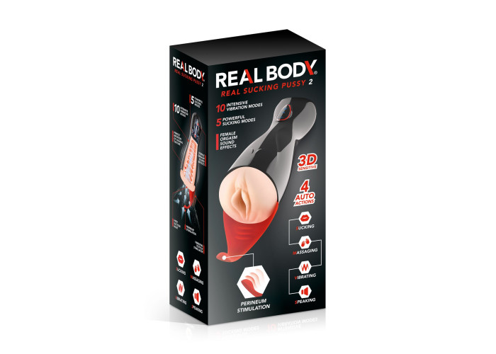 Мастурбатор для найвибагливіших! Навіть якщо ви вже спробували безліч найрізноманітніших іграшок, преміум-мастурбатор Real Body — Real Sucking Pussy 2 здатен вас здивувати (і, звичайно, задовольнити за повною програмою). У ньому поєднується відразу 4 ефекти: вібрація, всмоктування, аудіоефекти та стимуляція промежини. Крім того, цей мастурбатор підкорить вас реалістичністю, якістю виконання та продуманими деталями.
