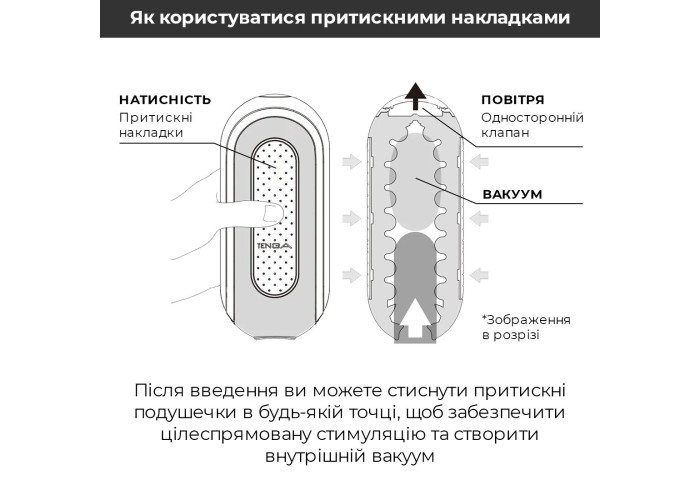 Досягати потужних оргазмів з Tenga Flip Zero Electronic Vibration просто: досить повністю змастити внутрішню частину виробу, закрити конструкцію, переконавшись, що обидва замки закриті з клацанням, засунути ковзні кронштейни і змастити вхід. Далі — увійдіть і насолоджуйтесь.