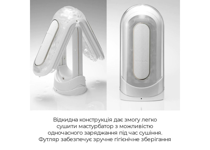 відкидна конструкція дозволяє легко сушити мастурбатор з можливістю одночасної зарядки під час сушіння (під час заряджання світиться відповідний індикатор);