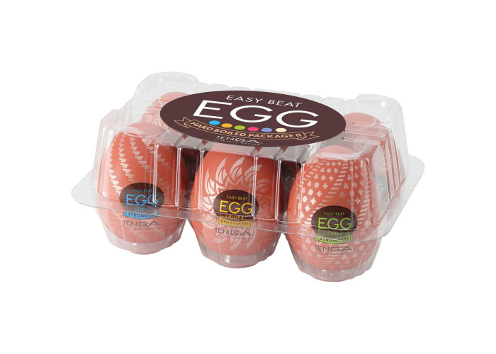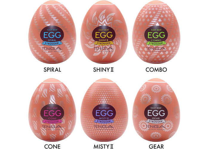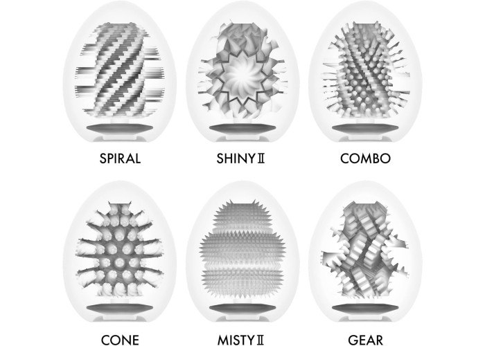На вигляд — звичайні яйця, які таять у собі багато приємних сюрпризів! Пропонуємо купити набір мастурбаторів-яєць Tenga Egg Hard Boilded II — абсолютно новий тип кишенькових мастурбаторів, які виготовлені з більш щільного TPE, ніж стандартні. Особливо опукла внутрішня текстура у вигляді реберець, спіралей, променів, шестерень, конусів та пірамідок дуже приємно відчувається на пенісі. Неймовірне задоволення, яке ні з чим не порівняти! У наборі є 6 яєць, кожне зі своєю текстурою, так що ви зможете поекспериментувати з відчуттями на повну. Підходять для будь-якого розміру пеніса. У комплекті з кожним яйцем — мініатюра лубриканту на водній основі.