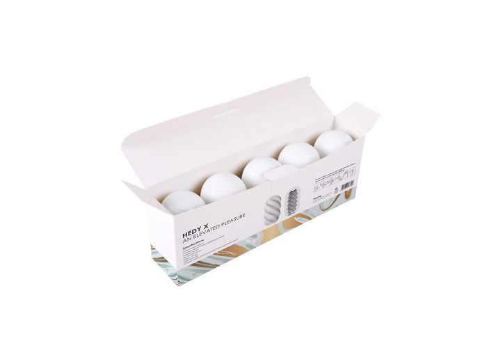 Яйця виготовлені з потовщеного ультра м'якого TPE для максимально яскравих відчуттів. Більш пружні, ніж стандартні Hedy! Матеріал є повністю безпечним для тіла. У набір яєць мастурбаторів Svakom Hedy X Control входить відразу 5 компактних яєць із дивовижною внутрішньою та зовнішньою текстурою. Випуклості, розташовані по спіралі, інтенсивно стимулюватимуть пеніс, а зовнішня текстура яйця ніби складається з безлічі найтонших шарів, покладених по спіралі, що забезпечує супер чутливі дотики. Ніжний матеріал добре розтягується, так що яйця ідеально підходять на будь-який розмір пеніса! У комплекті з кожним яйцем йде мініатюра лубриканта на водній основі (3 мл), тому можна відразу приступати до справи.