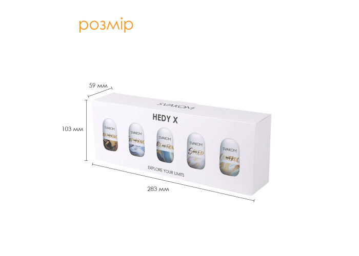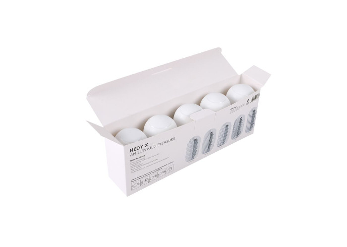 5 яєць, 5 унікальних текстур, 5 нових фантастичних відчуттів — пропонуємо купити набір яєць-мастурбаторів Svakom Hedy X-Mixed Textures, виготовлених з неймовірно реалістичного матеріалу. Спіралі, сегменти, сфери, смуги та хвилі — всі ці пророблені текстури розташовані всередині яєць і стимулюватимуть кожен сантиметр пеніса для вражаючих оргазмів. Але це ще не все! Кожне яйце можна використовувати навиворіт, адже зовнішня текстура кожного яйця також унікальна — ще більше вражень від одного набору. Упаковка є чудовою підставкою для сушіння мастурбатора!