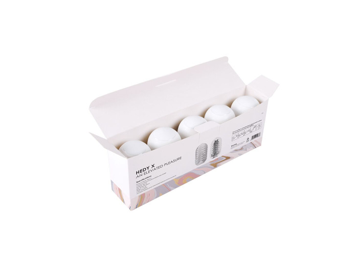 Яйця виготовлені з потовщеного ультра м'якого TPE для максимально яскравих відчуттів. Більш пружні, ніж стандартні Hedy! Матеріал є повністю безпечним для тіла. У набір яєць мастурбаторів Svakom Hedy X Speed входить відразу 5 компактних яєць із дивовижною внутрішньою та зовнішньою текстурою. Яйце всередині забезпечене щільними і добре відчутними хвилями, а зовні — безліччю опуклих хвиль, які ніжно пестять член. Ніжний матеріал добре розтягується, так що яйця ідеально підходять на будь-який розмір пеніса! У комплекті з кожним яйцем йде мініатюра лубриканта на водній основі (3 мл), тому можна відразу приступати до справи.