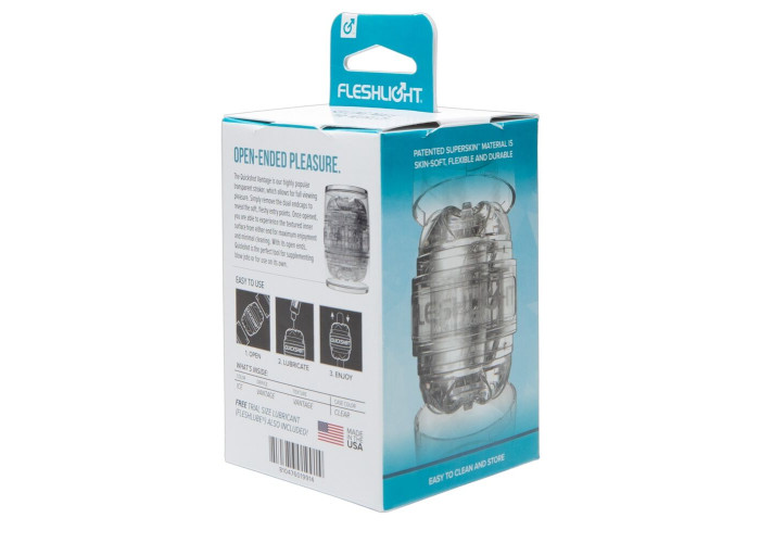 Догляд за мастурбатором Quickshot також не викличе труднощів. Наскрізний отвір і невеликий розмір дозволяють легко його промити, просушити і при необхідності обробити відновлюючим засобом, вивертаючи вставку навиворіт.