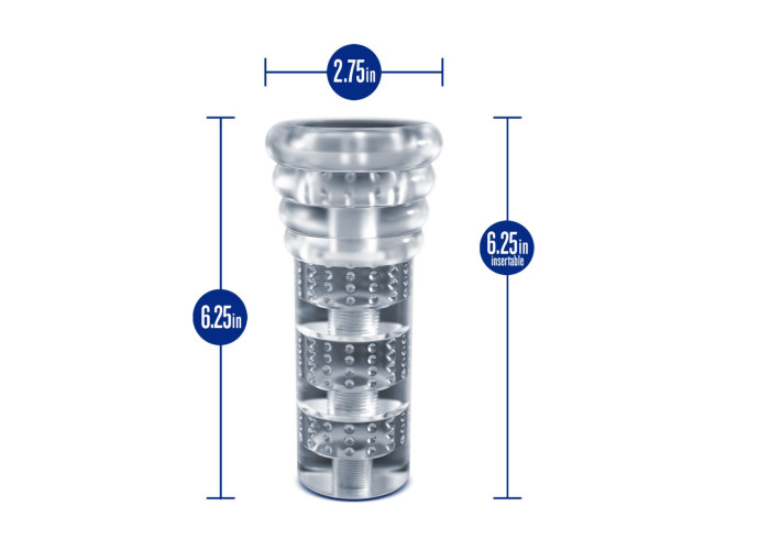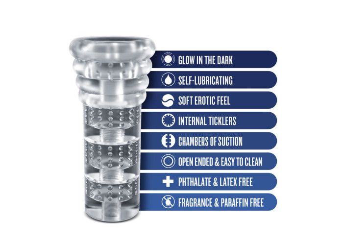 Мастурбатор Blush Rize – Luz Glow in the Dark Masturbator виконаний у привабливому прозорому корпусі, який злегка розширюється догори. Це забезпечує комфортний вхід та зручність використання.