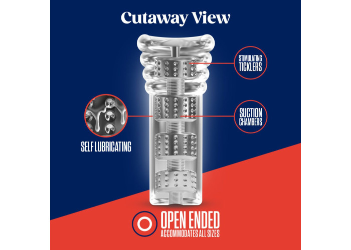 мастурбатор наскрізний, що максимально полегшує догляд за ним, а також робить іграшку придатною для будь-якого розміру пеніса;
