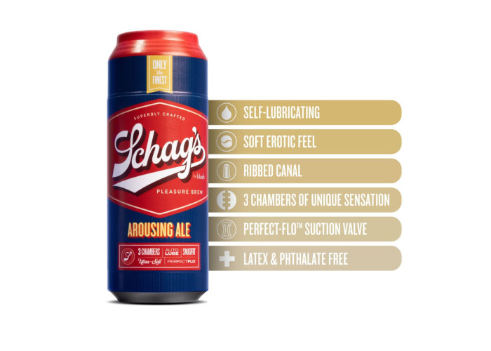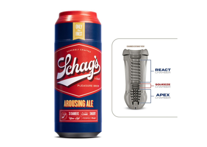 Мастурбатор — банка пива Blush Schag's Arousing Ale Masturbator Frosted дуже простий та зручний у використанні. Інтенсивність впливу можна регулювати самостійно, насолоджуючись більш потужною або більш ніжною стимуляцією. За бажанням можна додавати лубрикант на водній основі.