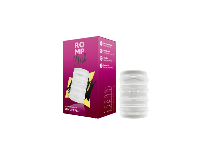 Рекомендуємо купити мастурбатор Romp Mosh — ультрам’яку класну іграшку, яка добре тягнеться і водночас щільно охоплює стовбур пеніса. Пройдіть новий рівень любовних ігор — дозвольте лише під час оральних пестощів активно ковзати рукою або ніжно прокручувати мастурбатор у сторони. До того ж цей маленький помічник має дві різні текстури для незабутнього задоволення — ребристу і з гребенями хвиль, що схожа на горловий мінет.