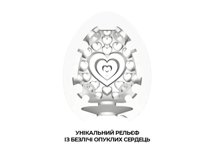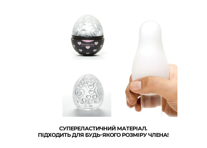 М’який та еластичний, мастурбатор Tenga Egg Lovers здатний розтягнутися під будь-який розмір статевого члена та подарувати приємну та ніжну насолоду. Внутрішній рельєф складається з безлічі опуклих сердечок, які не залишать поза увагою ані стовбур, ані саму головку, палко пестячи кожен міліметр ніжної плоті. Подвійне кільце на вході забезпечить щільне прилягання та подарує неймовірні відчуття від ковзання по стовбуру.