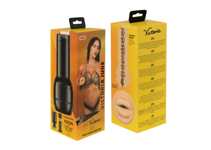 *Вікторія Джун — мініатюрна брюнетка з Нью-Йорка домініканського й пуерто-риканського походження. У кіно для дорослих вона дебютувала 2017 року, на сьогодні в неї вже понад 600 000 підписників у соціальних мережах. Візитна картка Вікторії — її чуттєві губи. Знаючи, скільки мрій і фантазій викликають вони у шанувальників, Kiiroo випустили мастурбатор за їхнім зліпком, у такий спосіб наблизивши шанувальників до здійснення головної мрії — мінету від Вікторії Джун.