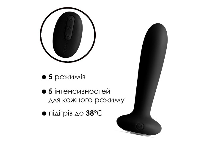 Хочете купити анальну пробку, досить велику і при цьому ніжну? Тоді дана модель – ваш вибір! Рекомендуємо купити анальну пробку з вібрацією та підігрівом Svakom Primo Black, яка підійде і для нього, і для неї. Оксамитовий силікон, 5 режимів вібрації та 5 швидкостей, підігрів до 38℃ і цілих дві години роботи роблять цей вібратор унісекс такою іграшкою, яка точно не набридне! До того ж, керувати нею легко і зручно за допомогою пульта дистанційного керування (батарейка для пульта в комплекті).
