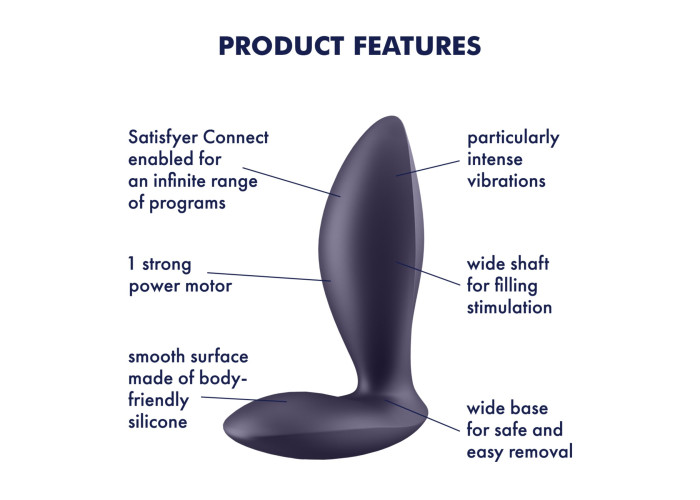 Анальною смарт-пробкою з вібрацією Satisfyer Power Plug можна керувати за допомогою кнопки на основі, а також — через застосунок на вашому смартфоні. Після встановлення безкоштовного застосунку Satisfyer Connect (доступно і для Android, і для iOs) ви зможете: