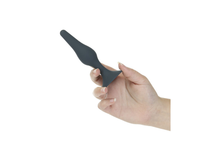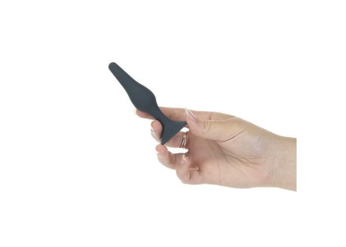 - Маленька силіконова анальна пробка для першого досвіду. Пружна, ніжна, із завуженим кінчиком та широкою основою для безпеки. Загальна довжина 10,2 см, що вводиться — 9 см, діаметр 2,7 см.