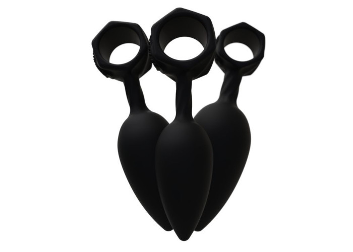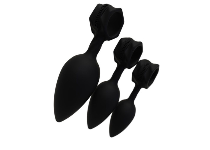 Рекомендуємо придбати набір з 3 анальних пробок Bathmate Anal Training Plugs. Всього у набір входить три анальні пробки різного розміру і діаметру. Вони виконані з безпечного гіпоалергенного силікону, який можна використовувати з будь-якою змазкою на водній основі, а очищати водою з милом і спеціальним засобом для очищення. Форма пробок класична - звужена на кінці - що забезпечує комфортне введення. А ось, щоб дістати девайс, кожна іграшка забезпечена зручним кільцем-ручкою, яка також служить у якості стопера або підтримкою для спеціальної вібропулі Bathmate Vibe Bullet, яку можна придбати окремо, так як в цьому наборі її немає.