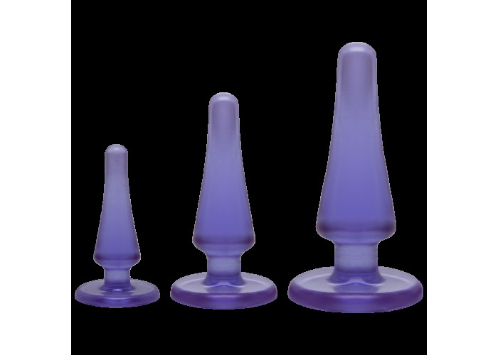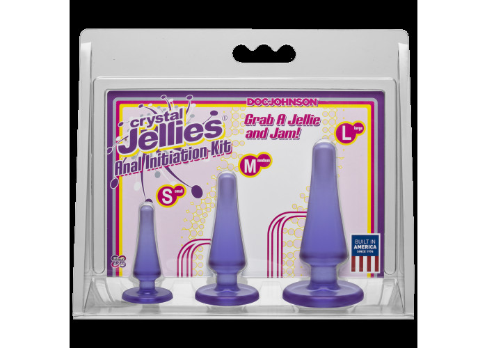 Пропонуємо придбати набір анальних пробок Doc Johnson Crystal Jellies Anal Initiation Kit. Стимулятори мають плоску основу, яка одночасно служить безпечним обмежувачем. Набір виконаний з сучасного гіпоалергенного матеріалу з додаванням антибактеріальної формули Sil-A-Gel. У наборі три класичні пробочки для анальної стимуляції. Форма конусоподібна, з безпечним розширенням до низу і обмежувачем. Цей набір ідеальний і для новачків, які тільки відкривають для себе світ анальних насолод, і для більш досвідчених партнерів - для стимуляції ануса перед сексом або використання під час класичної близькості. Анальні втулки виготовлені з приємного прозорого еластомеру, помірно пружні і гнучкі для комфортного введення.