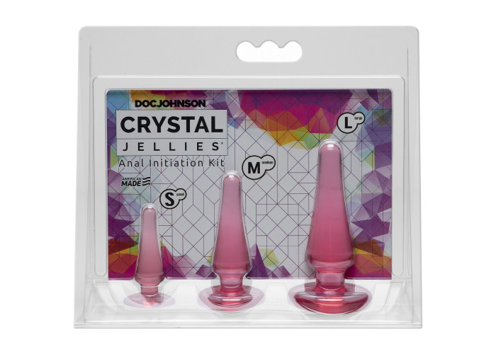 Пропонуємо придбати набір анальних пробок Doc Johnson Crystal Jellies Anal Initiation Kit. Стимулятори мають плоску основу, яка одночасно служить безпечним обмежувачем. Набір виконаний з сучасного гіпоалергенного матеріалу з додаванням антибактеріальної формули Sil-A-Gel. У наборі три класичні пробочки для анальної стимуляції. Форма конусоподібна, з безпечним розширенням до низу і обмежувачем. Цей набір ідеальний і для новачків, які тільки відкривають для себе світ анальних насолод, і для більш досвідчених партнерів - для стимуляції ануса перед сексом або використання під час класичної близькості. Анальні втулки виготовлені з приємного прозорого еластомеру, помірно пружні і гнучкі для комфортного введення.