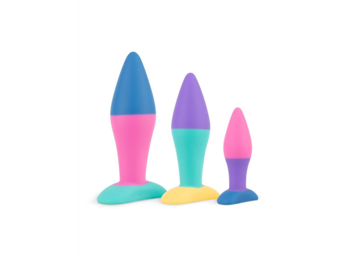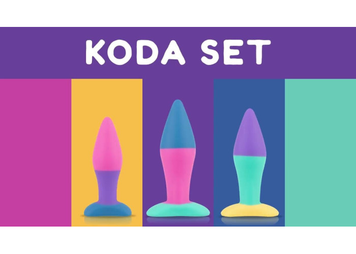 Виконані з приємного на дотик м’якого силікону, ці пробки завдяки своїй формі та забарвленню точно не залишать вас байдужими! Набір анальних пробок PMV20 Koda – Butt Plug Set — це три різні розміри: м’яка конічна форма — для більш комфортного введення, плоска — основа-стопер.