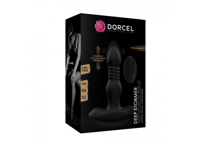 Анальна пробка з вібрацією і пульсацією Dorcel DEEP STORMER — іграшка унісекс з двома ультра потужними моторами і продуманою конфігурацією, яка дозволяє вводити пробку повністю або частково. Крім того, в режимі носіння сидіти на пробці буде особливо цікаво завдяки закругленій основі.