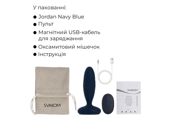 Анальна смарт-вібропробка з пульсацією Svakom Jordan — незвичайна анальна пробка, адже вона поєднує в собі два типи стимуляції, вібрацію і пульсацію, схожу на реальні фрикції. Пробка проста у використанні та комфортна для введення.