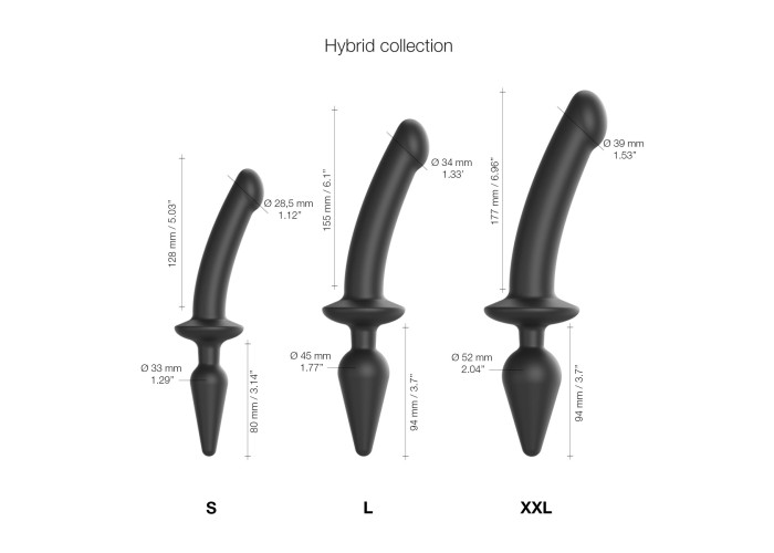 Колекція Strap-On-Me Switch (у перекладі — перемикач) дає змогу перемикати та поєднувати задоволення. Представлені у двох варіантах форми (реалістичної та напівреалістичної), дилдо забезпечують також і різноманітність у розмірах: від мініатюрного варіанту S до гіганта XXL. Анальні пробки також відрізняються за розміром. Різні діаметри, форми та фактури підкорюють новими відчуттями, більш інтенсивними та несподіваними. Доберіть оптимальну форму та розмір і швидше вирушайте в наповнений сексуальними експериментами світ надзвичайних оргазмів.
