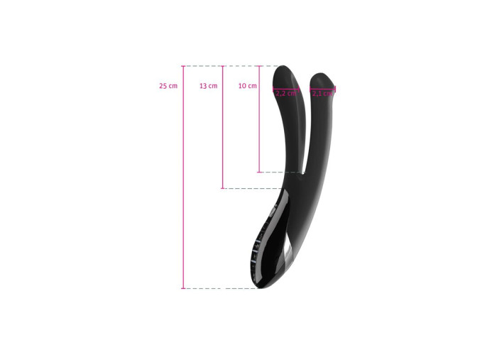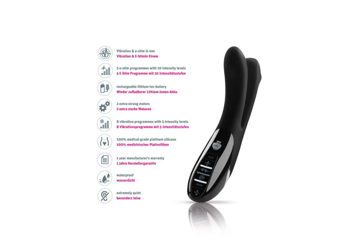 вібратор з двома частинами, які можна використовувати як для вагінально-анальної стимуляції, так і для вагінально-кліторальної; у кожній частині - окремий потужний мотор для задоволення буквально всіх еротичних бажань, що працює на 8 програмах з 5 рівнями інтенсивності;