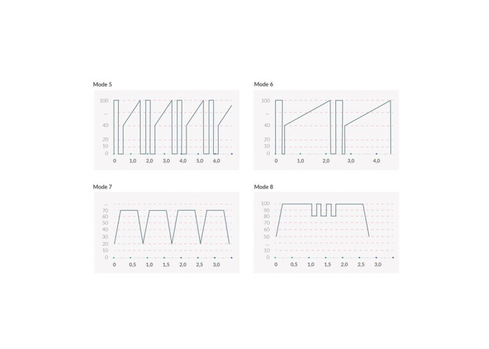 для кожного режиму електростимуляції передбачено регулювання інтенсивності: всього є 10 рівнів;