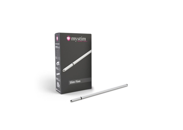 Електростимуляція пеніса не тільки зовні, але і зсередини? Легко! Потрібно тільки купити уретральний зонд Mystim Slim Finn, який дозволить поєднувати болісну насолоду від розтягування уретри з підсилюючими електроімпульсами в абсолютно незвичайних місцях. Ідеально гладкий і дуже тонкий, завдяки ручному поліруванню, з заокругленим кінцем і 6 мм в діаметрі він, після невеликого тренування, легко прослизне в уретральний канал. Підключається до електростимулятора (купується окремо).