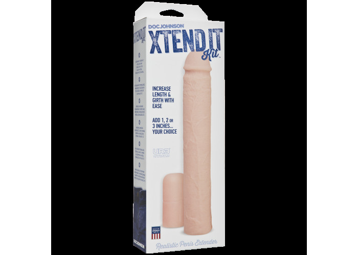 У нас ви можете придбати насадку на член Doc Johnson Xtend It Kit White. Ця модель виготовляється вручну зі зліпка реального члена, а у якості матеріалу використовується сучасний Ultraskin. Головною особливістю насадки є те, що ви самостійно можете вибрати необхідне збільшення довжини: 1, 2 або 3 дюйма. Комплект Xtend It Kit White складається з полого рукава (загальна довжина 22 см, зовнішній діаметр 3,8 см, внутрішній діаметр 2,6 см) і щільної вставки (довжина 6 см, діаметр 3,2 см). Сам рукав відмінно тягнеться, тому насадка підійде всім чоловікам, незалежно від розмірів пенісу.