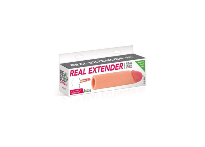 Потужна ерекція в будь-якій ситуації та збільшений розмір — цього легко досягти, якщо ви вирішите купити насадку на член Real Body — Real Extender HARDY. Ваш член стане більше в довжину й у діаметрі, покаже всю свою міць у найвідповідальніший момент! Реалістичний матеріал та промальована головка забезпечують максимально натуральні відчуття. Силікон еластичний та легко розтягується.