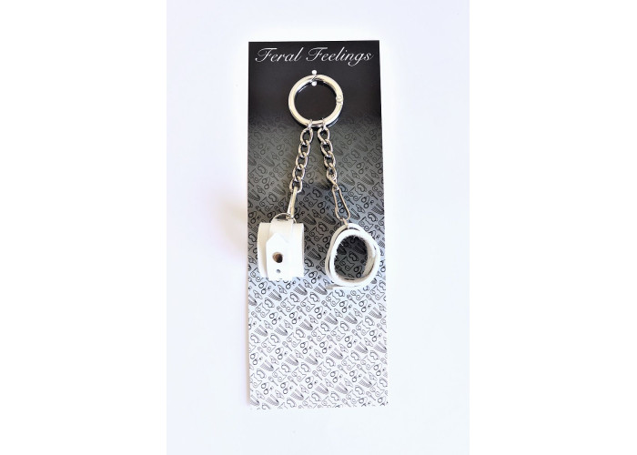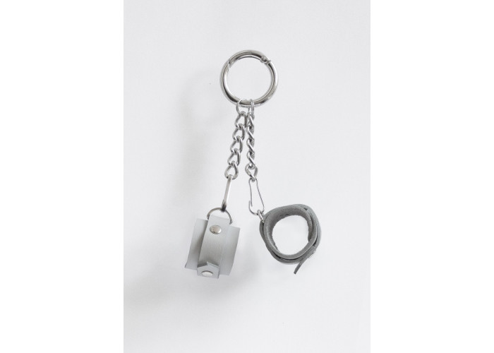 Міні-наручники з натуральної шкіри рослинного дублення, прикрашені хольнітенамі (заклепками). Кожен наручник кріпиться до основного кільця-карабіну ланцюжком і міні-карабіном, тому можна носити тільки один наручник, а другий - подарувати своєму партнеру у якості символу.