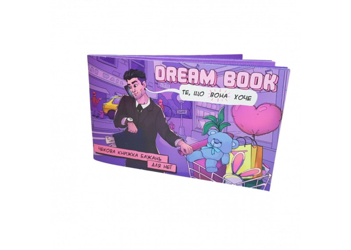 «DREAM BOOK» - це символ того, що Ви хочете зробити Вашу дівчину щасливішою та здійснити всі її бажання! Все, що необхідно партнерці, це обрати відповідне бажання, відірвати його чек та віддати партнеру для виконання. Термін виконання бажання узгоджується з партнером, а сам чек виконується тільки один раз. На корінці чека ставиться відмітка про те, що він погашений та дата виконання. Але головне - це Ваші спільні позитивні емоції!