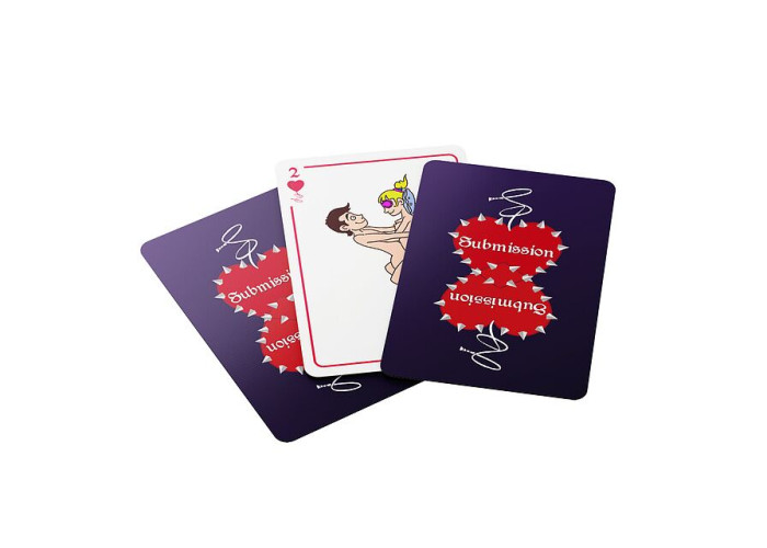 «Підкорення» – це колода, що складається з 54 гральних карт, на яких представлені дії, пози та предмети для розваг у легкому БДСМ.