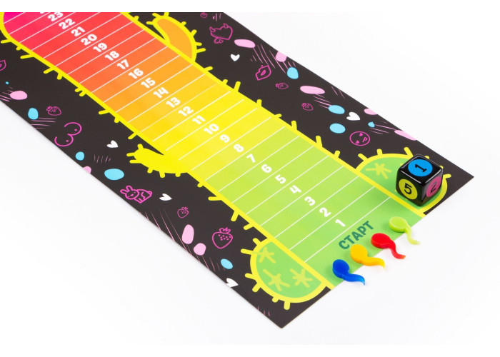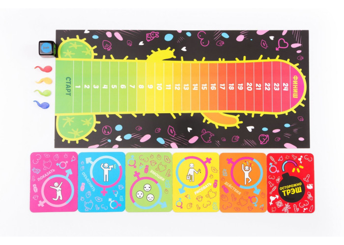 Правила: Учасники діляться на команди. Гравець для вибору завдання кидає кубик і тягне карту з тієї стопки карт, яка відповідає межі на кубику. Завдання можуть бути - пояснити, намалювати, або показати те, що зазначено на карті. Далі команда повинна вгадати, що показує, малює або пояснює їх гравець. Все це приправлено відіграванням певних емоцій і дій.