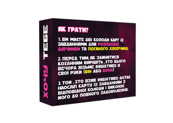 3. Той, хто взяв ініціативу, дістає наосліп картку із завданням із відповідної колоди і виконує його до повного задоволення.