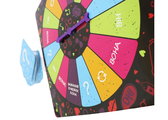 - Механіка гри дуже проста: крутите стрілку, тягнете картку і виконуєте завдання.