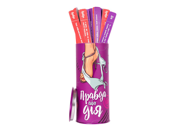 Стисло про правила: Ви по черзі питаєте один одного «Правда чи Справа?». Якщо вибрали «Дію» - тягніть стик і виконуйте завдання з його фіолетової сторони. «Правда» - вам необхідно відповісти на питання з червоної сторони стіка. Не можна обирати одне і теж завдання більш ніж двічі поспіль. Ви маєте можливість відмовитися від виконання «Дії» або «Правди» не більше двох разів за гру. Після третьої відмови інший гравець(і) призначає вам покарання (фантазуйте:))) і, яке, обов'язково повинно бути виконано. У грі немає ні переможців, ні переможених - головне участь. Розслабтеся, будьте чесними і наполегливими, і ви отримаєте від гри максимум задоволення:)
