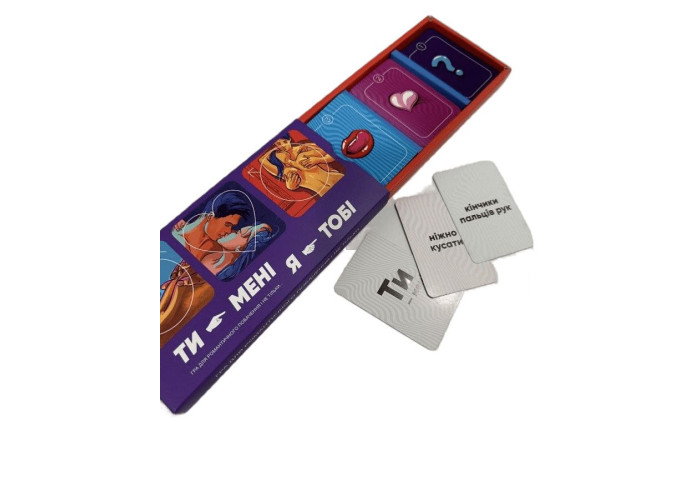 Суть гри. У коробці ви знайдете 3 колоди карт. Карта з першої колоди визначає хто, виконуватиме завдання, з другої — що потрібно зробити, а з третьої — з якою частиною тіла. Може випасти щось неймовірно ніжне, наприклад, "лоскотати язиком плечі" а може — і щось кумедне на кшталт "посмоктувати коліно", то ж гра не буде нудною! До того ж, цікаві комбінації, які підкаже вам еротична гра “Ти – мені, я – тобі”, цілком можуть у майбутньому стати вашими улюбленими ласками, тому — вперед до експериментів та несподіваних відкриттів!