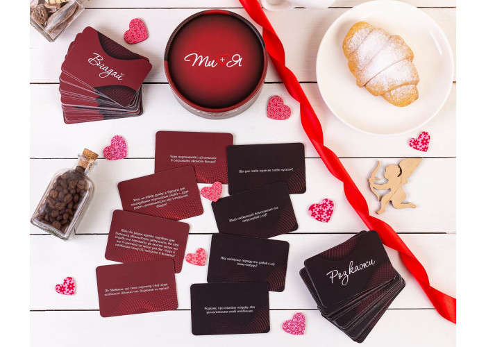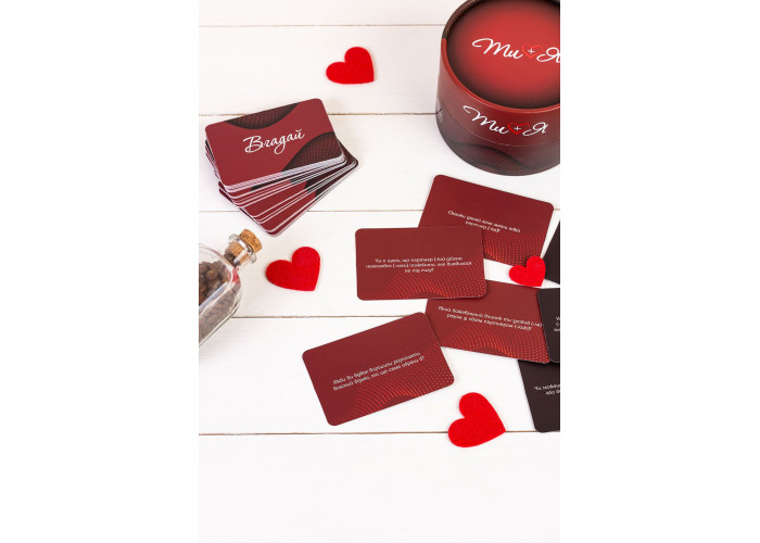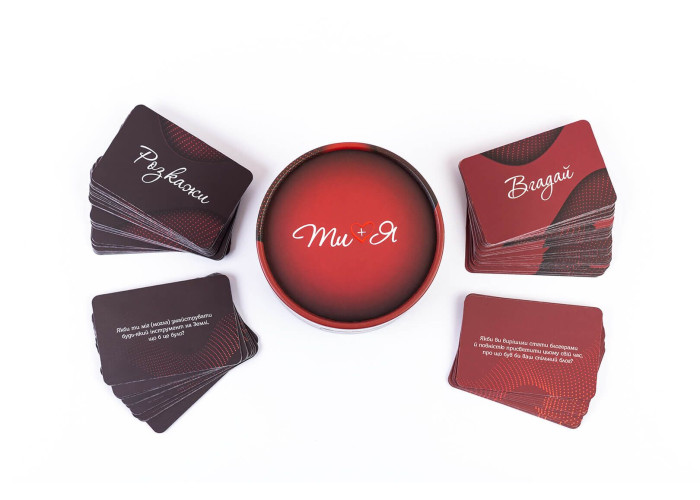 Опис: «Ти + Я» — гра, яка не тільки зможе розважити вас, але і стане справжнім сімейним психологом для ваших відносин. Відповідаючи на небанальні, іноді несподівані запитання, ви дізнаватиметеся щось нове про свого партнера і про самого себе. Гра допомагає зробити відносини більш розкутими, знайти нові теми для обговорення, підштовхнути до цікавої розмови.
