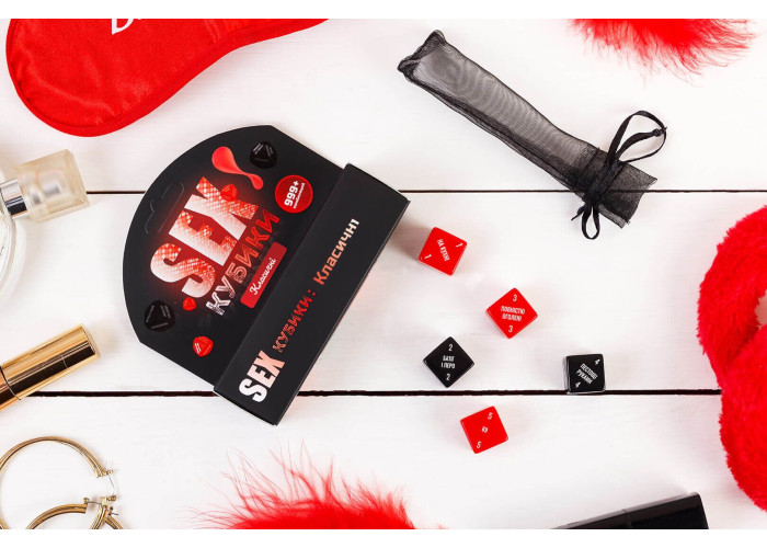 SEX-Кубики: Класичні - це відмінна можливість поєднати інтригу, задоволення, азарт. Перед вами п'ять кубиків, сума комбінацій яких дає більше 999 варіантів розвитку подій. Нудно точно не буде! Кидайте кубики і нехай випадок визначить ваші плани на вечір.