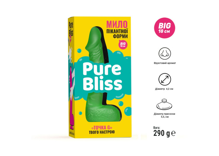 Приголомшлива фізична реалістичність однозначно вразить кожного! Ідеально опрацьовані анатомічні особливості, співвідношення діаметра та довжини. Мило-пеніс «Pure Bliss» — це не просто веселий сувенір. Це мило високої якості, яке підходить для активного використання! Не пересушує шкіру, залишає легкий фруктовий аромат.
