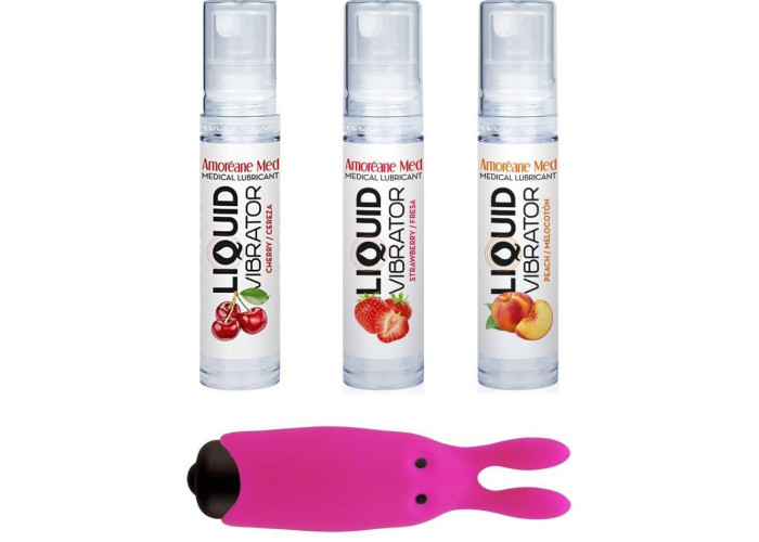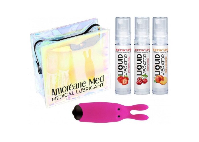 Йди за кроликом - у світ насолод і неймовірних задоволень! Пропонуємо придбати набір з 3-х смаків стимулюючого лубриканта (3х10 мл) і вібропулі Adrien Lastic Pink. Стимулюючий лубрикант Amoreane Med - це природна формула з екстрактами рослин з лісів Амазонки, яка змусить вас тремтіти від задоволення! Ефект вібрації доповнить відчуття в найінтимніші моменти. Вібропуля у вигляді кролика з ніжними силіконовими вушками порадує вас 10 режимами роботи. Використовуйте все разом або окремо - як підкаже фантазія! Набір упакований в стильну косметичку-хамелеон.