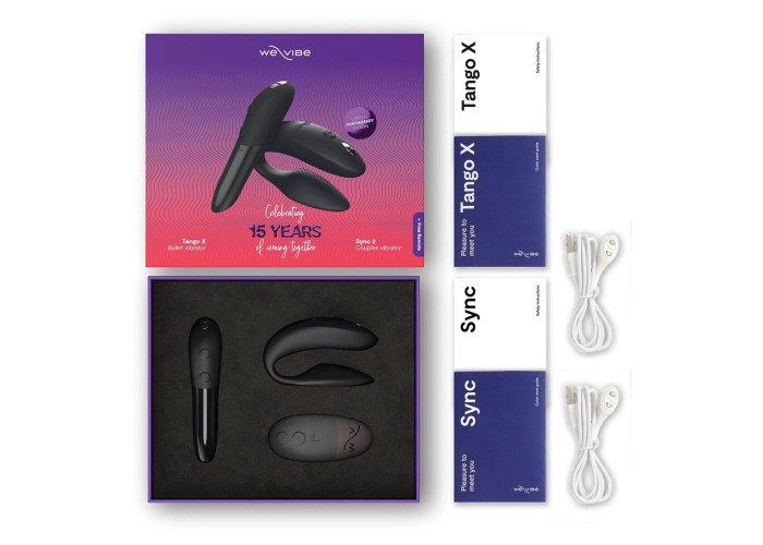 Відразу дві іграшки для парного та самостійного використання! Якщо ви шукаєте шикарний інтимний подарунок або просто хочете зробити інтимне життя більш гарячим та насиченим, рекомендуємо купити подарунковий набір We-Vibe 15 Year Anniversary Collection. У наборі є дві круті іграшки We-Vibe: смарт-вібратор для пар Sync 2 та потужна віброкуля Tango X. Зверніть увагу: у наборі іграшки обійдуться вам дешевше, ніж у разі купівлі окремо! Смарт-вібратор для пар Sync 2 оснащений двома моторами, щоб кожен у парі отримав максимум задоволення, та працює в 10 режимах вібрації. Вібратором можна керувати й за допомогою кнопок, і зі смартфона через безкоштовний застосунок We-Vibe. Віброкуля Tango X працює в 7 режимах, і для кожного передбачено по 8 рівнів інтенсивності — її можна налаштувати ідеально під свої бажання! Обидві іграшки повністю водонепроникні (IPX7).