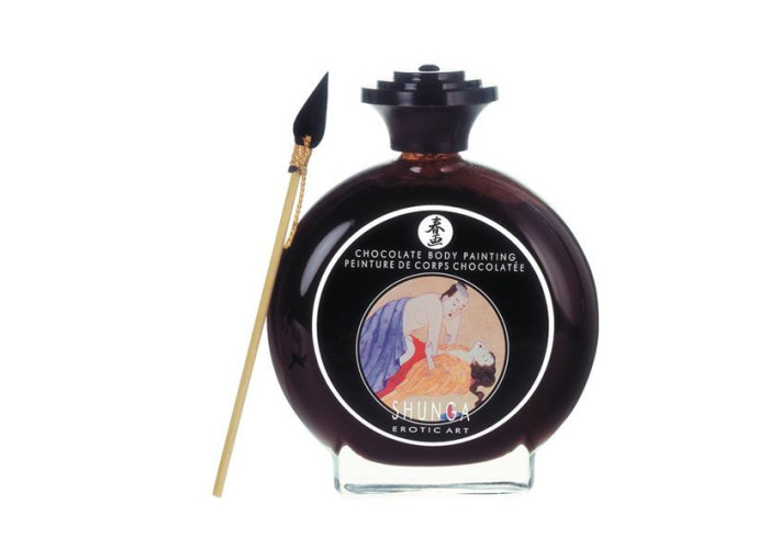 Їстівна фарба для тіла Shunga зі смаком шоколаду – незвичайне доповнення до ваших ігор кохання. У комплекті з пляшечкою, стилізованою під японське приладдя для каліграфії, йде спеціальний пензлик. З його допомогою ви не тільки зручно нанесете фарбу на тіло партнера, але й подаруєте йому приємні відчуття. В інтимних та ерогенних зонах дотики пензлика викликають справжнє захоплення.