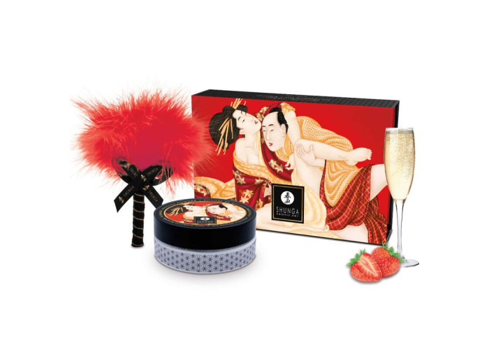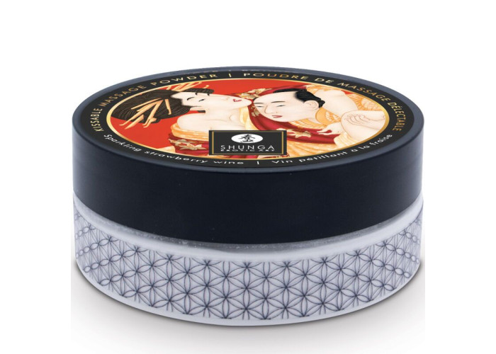 Вираз «солодкі поцілунки» стане реальністю: для цього рекомендуємо купити смачну пудру для оральних пестощів Shunga Body Powder Sparkling Strawberry Wine. Вона не тільки пахне полуницею, але й має солодкий цукерковий смак, так що перетворить тіло вашого партнера на вишукані ласощі. Наносити пудру можна на будь-яку ділянку тіла — вона їстівна та абсолютно безпечна, оскільки складається тільки з натуральних інгредієнтів.