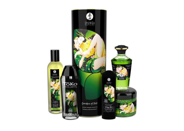 Подарунковий набір Garden of Edo зібрав у собі найкращу колекцію продуктів від Shunga, які допоможуть вам провести незабутню романтичну ніч. Усі засоби виконані з натуральних інгредієнтів і мають вишуканий аромат. У комплекті є олія для масажу, збуджувальна олія; гель, що підвищує чутливість; лубрикант і сіль для ванни.