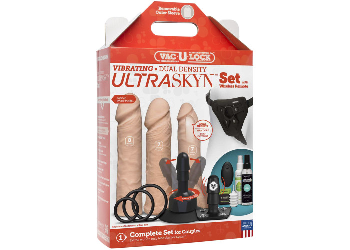 Що містить набір для страпона Doc Johnson Vac-U-Lock VIBRATING Dual Density ULTRASKYN Set?
