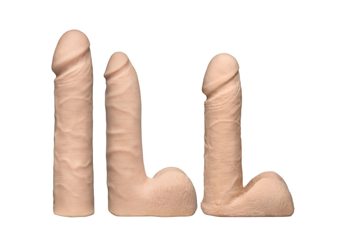 3 різні за формою і розміром фалоімітатори з однаковим діаметром 3,8 см: найменша насадка з неяскраво вираженою мініатюрною головкою, спіральним рельєфом на стовбурі й потужною мошонкою (ввідна довжина 11,4 см); насадка середнього розміру з більш різко окресленою головкою і таким же спіральним рельєфом без мошонки (ввідна довжина 15,2 см); найбільша насадка трохи вигнута, зі здутими реалістичними венами та відчутним потовщенням біля основи (ввідна довжина 19,1 см). Насадки швидко нагріваються до температури тіла під час використання. М’які та податливі зовні та тверді всередині, вони відтворюють відчуття справжнього ерегованого статевого члена. Покриті унікальним запатентованим матеріалом ULTRASKYN™, фалоімітатори передають тактильне відчуття справжньої шкіри людини.